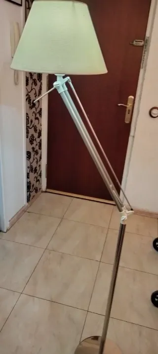 Lámpara de pie en perfecto estado. Me la cambio porque ya no la necesito. - Base y pie en acabado plateado. - Pantalla cilíndrica en tono beige.