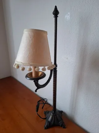 Lámpara de mesa vintage tela y metal