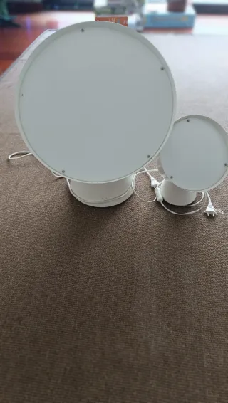 Conjunto de dos lámparas vintage Ikea PS 2017 - Diseño de Ola Wihlborg. - Estructura en plástico. -Ofrece una luz suave y ambiental, creando una atmósfera acogedora en cualquier habitación. Su diseño único permite ajustar la dirección y el ángulo de la luz, lo que la hace adecuada para iluminar diferentes áreas de la casa, como el salón, el dormitorio o el comedor. Boton de encendido con el pie Sólo le falta una tuerca (ver última foto) standar Diametros Grande 45cm Pequeña 24 cm Alturas: Grande 55cm Pequeña 33cm Se vende el juego de 2. Por separado: Grande 125 euros Pequeña 75 euros