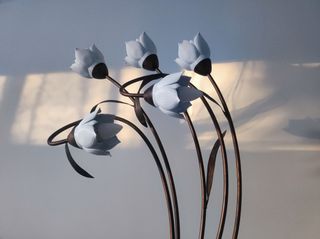 Lámpara de pié para iluminación interior con tulipas de flores de loto y bombillas LED incluidas. Son 5 focos de luz cálida capaces de crear un ambiente tranquilo y distendido. Base de metal. Pulsador de pié