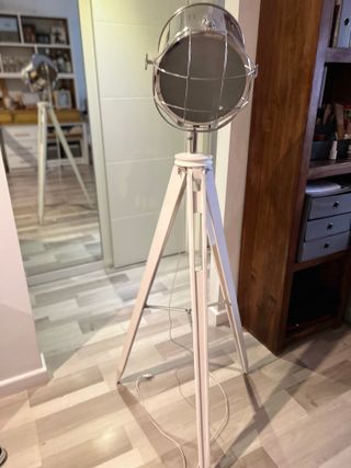 Lámpara de pie con diseño industrial, ideal para salones, dormitorios u oficinas. Fabricada en metal resistente, con acabado robusto y moderno que encaja perfectamente en ambientes tipo loft, vintage o contemporáneos. Proporciona una luz cálida y agradable, perfecta para crear ambiente o como punto de luz auxiliar. Sin uso, funcionando perfectamente. Base estable y estructura sólida. Altura 155 cm Entrega en mano