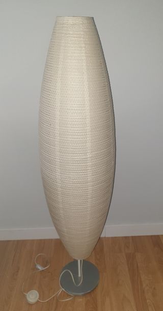 lampara de pie de ikea, con bombilla luz calida y pantalla beig incluida. poco uso
