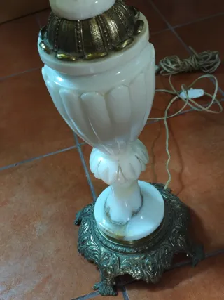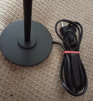 OJO! Retirada de tienda únicamente porque le falta la tulipa pequeña. Resto impecable. - Casquillos E27 (el gordo). - Estructura principal en metal negro. - Pantalla superior de policarbonato. - Brazo flexible con luz adicional. - Base redonda y estable.