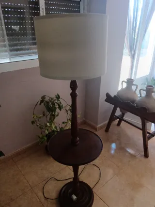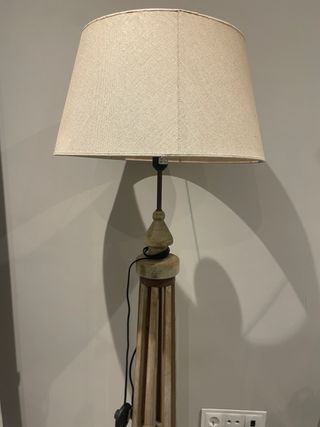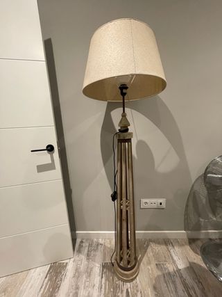 Elegante lámpara de pie ideal para iluminar con calidez cualquier estancia. Fabricada en madera torneada con un acabado natural que resalta la veta, aportando un toque rústico y sofisticado a la vez. ➡️ Dimensiones: Altura total de 149 cm. ➡️ Material: Cuerpo robusto de madera tallada y base circular estable. ➡️ Pantalla: Diseño rectangular en tela color crema, ideal para crear una luz ambiental suave. ➡️ Funcionalidad: Encendido clásico mediante tirador. ➡️ Estado: Muy bien cuidada y funcionando perfectamente. Perfecta para salones, despachos o como luz de lectura. 📍 Disponibles para ver sin compromiso.