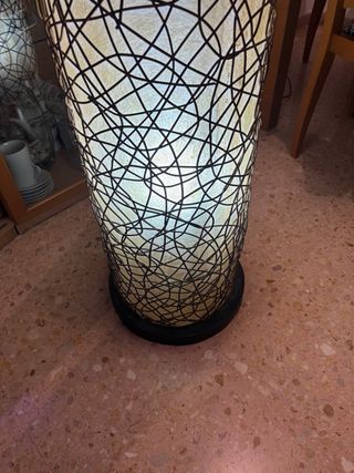 Lámpara de pie con un diseño moderno y elegante, ideal para añadir un toque distintivo a cualquier espacio. - Estructura con un entramado de líneas. - Base redonda.