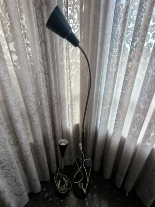 Conjunto de dos lámparas de Ikea. Ideales para salón o dormitorio. - Lámpara principal de pie, flexible. 149cm de alto. - Lámpara de mesita, más pequeña, flexible. 67cm de alto. - Fabricadas en metal y plástico. - Bases con imán. - Funcionan perfectamente.
