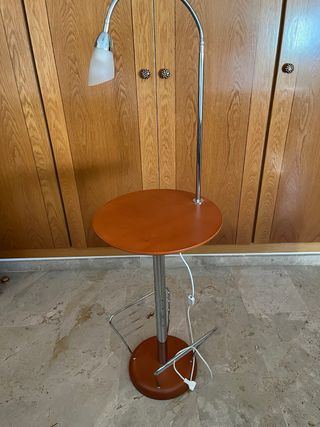 Lámpara de pie con un diseño moderno y funcional, ideal para cualquier rincón y muy práctico para la lectura. - Incorpora una práctica mesa auxiliar redonda. - Base con revistero metálico. - Altura ajustable. Luz incorporada con interruptor.