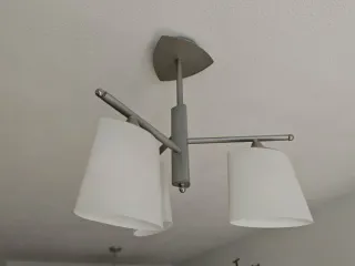 Elegante lámpara de techo con un diseño moderno y sofisticado. Perfecta para iluminar cualquier estancia. - Acabado en color plateado y blanco. - Diseño de cuatro tulipas. - Estructura metálica. 13€ cada una Las 3 lámparas por 30€!!!