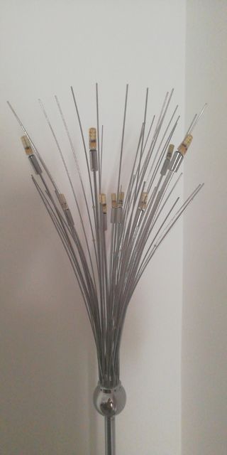 Lámpara con pie de muy buena calidad, pesada. Se le puede quitar el pie y usar como lámpara de techo. Me da pena deshacerme de ella, pero he cambiado el mobiliario y ya no pega. Tan sólo el pie costó más de 100€.