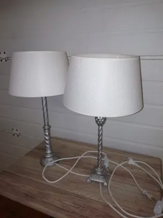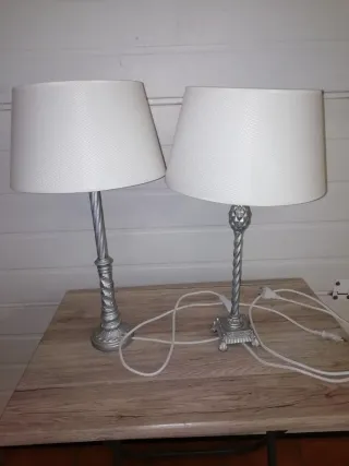 Juego 2 Lámparas Mesa Noche Plateadas