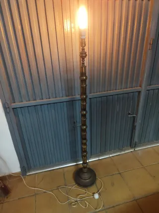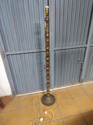 Lámpara de pie de aproximadamente 150 cm de metal. Funciona. El cable tiene algunos remiendos como se ve en la foto. Con botón para poder encender/apagar fácilmente pisando con el pie.