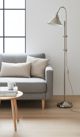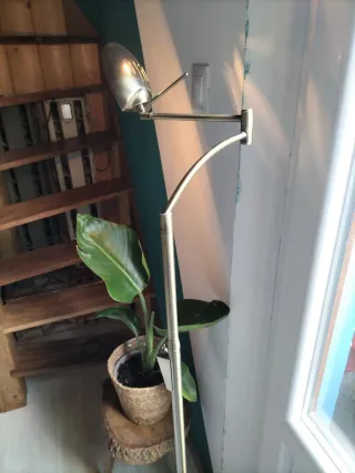 Dale un toque elegante y funcional a tu hogar con esta lámpara de pie de diseño atemporal. Su estructura robusta y cabezal orientable la convierten en la opción ideal tanto para iluminar una estancia completa como para crear un ambiente acogedor de lectura. Se encuentra en buen estado y lista para usar. 💡 Cabezal articulado para orientar la luz fácilmente. ✨ Acabado en acero cepillado de alta calidad. 📏 Altura regulable gracias a su mástil extensible. 🔘 Interruptor de mano integrado en el cable para mayor comodidad. 🏠 Estilo versátil que combina con decoración moderna, vintage o nórdica.