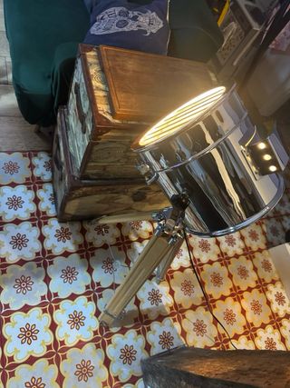 Vendo lámpara de pie antigua, de madera maciza , con mesa auxiliar integrada de 53cm. Diseño clásico y elegante, ideal para salón, rincón de lectura o decoración vintage. Se encuentra en buen estado para su antigüedad, funcionando correctamente. La madera está bien conservada y la pantalla aporta una luz cálida y acogedora. Pieza decorativa y práctica, difícil de encontrar hoy en día. Características: • Lámpara de pie de 171cm de altura con mesa integrada de 53cm • Material: madera • Estilo: clásico / vintage • Estado: usada, antigua y funcional • Luz cálida, ideal para ambiente
