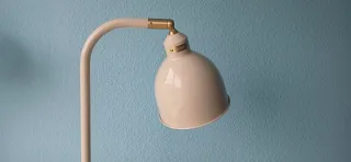 Sólo montada y probada, pero no la puedo devolver porque cuesta desmontarla, tengo el ticket. Beige claro y detalles de color latón. Cabezal orientable. Inspirada en las antiguas lámparas industriales esmaltadas. Medidas diámetro del pie: 25 cm Longitud del cable: 1.8 m Altura: 140 cm Máx.: 16 W