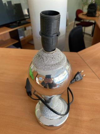 Pie de lámpara de mesa con un diseño texturizado. - Acabado en tono plateado. - Fabricado en metal.