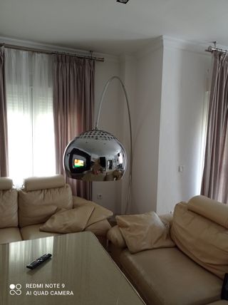 Lampara de pie de 180cm. Iluminación indirecta graduable más mini foco orientable (para leer) y una pequeña mesa a 73cm de 37x26cm. Cables: enchufe a mando 120cm, mando a base 97cm. Negociable