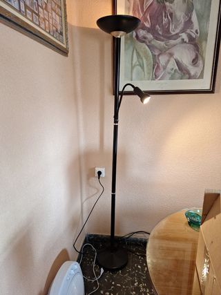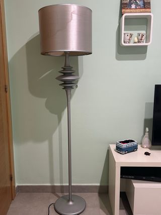 Lámpara de pie regulable. Luz cálida pero se puede poner bombilla blanca, incluso led. Para salon, escritorio... Ya que se puede regular la altura desde 1,20 a 1,70
