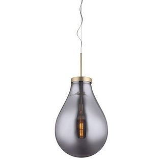 Lámpara de cristal smoky con espectacular forma de bombilla gigante. Los remates de la propia pantalla y el plafón son de metal dorado, lo que le aportan el toque sofisticado perfecto para ambientes urbanos. El cable es de acero revestido, garantizando una sujección perfecta. Incorpora bombilla de filamentos que potencia su luz de ambiente. Existe disponible también el modelo de pie que completará el conjunto a la perfección.Cristal smoky. Diseño moderno. Luz de ambiente. Colores disponibles: smoky. Bombilla incluída.