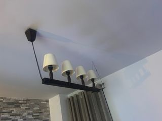 Lámparas de mesa y techo negra y blanca.