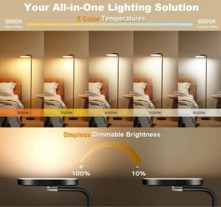 Lámpara de Pie LED Regulable 36W 3200LM con Mando y Control Táctil - 5 Temperaturas Color - Luz para Leer Ajustable 360° en Salón, Dormitorio, Oficina - Negro
