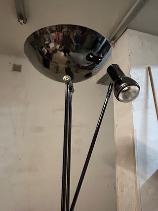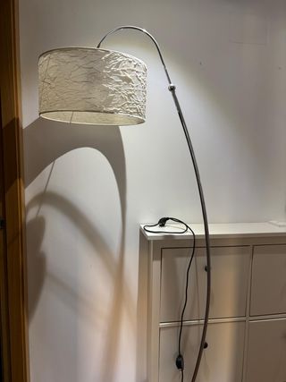 Preciosa lámpara de pie de aluminio. Se encuentra en muy buen estado. - Diseño elegante y minimalista. - Perfecta para iluminar tu salón u oficina. - Dos brazos de luz ajustables y orientables. Se entrega con las dos bombillas incluidas. 4 posiciones de intensidad de luz. Ideal para situar junto sofá, para leer o ver televisión. Altura 195cm. Se recoge en Getafe Norte. No negocio precios. Más lámparas en mi perfil. Lampara, bombilla, iluminación, Ikea, diseño, kallax,