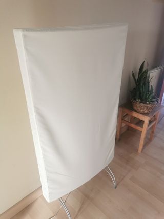 Ocupa poquito y funciona perfectamente enchufada y con pulsador para el pie de interruptor. Luz anaranjada para dar calidez y ambiente. Ideal para sala estar, centros de terapias.