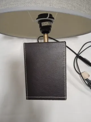 Base para lámpara con un diseño elegante y moderno. - Medidas: 16 cm de alto x 11 cm de ancho. - Acabado en piel con costuras decorativas.