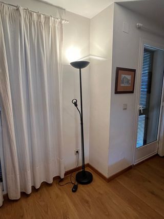 Lámpara de pie con acabado en negro, ideal para iluminar cualquier rincón de tu hogar. Excelente calidad - Diseño moderno y funcional. - Altura regulable. - Intensidad regulable - con lampara accesoria para lectura orientable Funciona perfectamente En muy buen estado