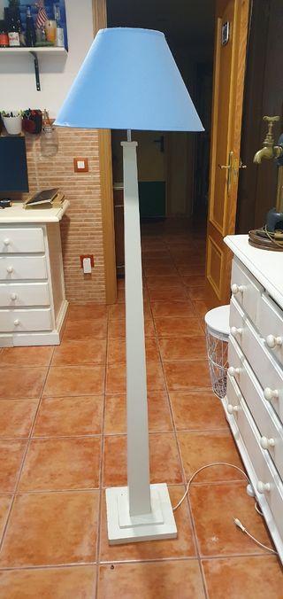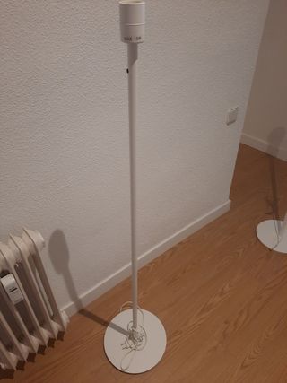 Lampara de pie 132 cm sin tulipa. Comprada en Camino a Casa. Madera blanco roto con interruptor de pie. Algunas marcas de roce en la base, que se pintan facilmente. En mi perfil tengo la pareja para sobremesa.