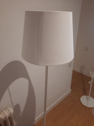 Preciosa lámpara de pie de Ikea, ideal para iluminar cualquier rincón de tu hogar. Se encuentra en muy buen estado. - Pantalla de tela blanca. - Estructura de metal negra. - Diseño elegante y minimalista.