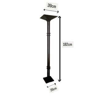 Lámpara de pie con un diseño moderno y elegante. - Acabado en color negro y plateado. - Fabricada con materiales resistentes de metal y plástico.
