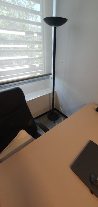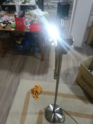 Lámpara de pie para salón u oficina Funciona la bombilla, solo falta embellecedor de la tuerca de regulación iluminosidad.