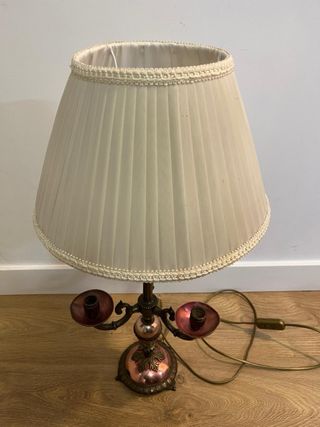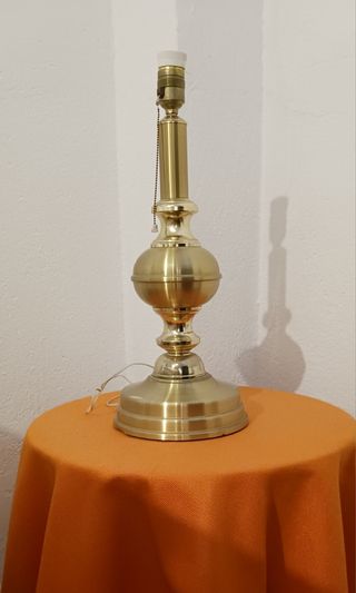 Lámpara de mesa antigua con pie de metal, interruptor antiguo y bombilla incluída. Funciona. le falta la tulipa o pantalla