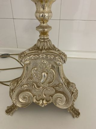 Origen frances . siglo XVIII laton . transformado en lampara . Era un candelero.