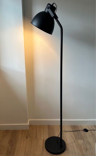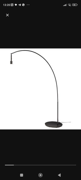 Preciosa lámpara de pie de IKEA, completamente nueva. Es de color negro y tiene un diseño elegante y moderno. - Ideal para iluminar cualquier rincón de tu hogar. - Estructura de metal resistente. Se vende sin pantalla. NO ESTÁ USADA, SOLO LA MONTÉ UNA VEZ Y LA VOLVÍ A GUARDAR EN SU CAJA. SE VENDE SIN PANTALLA, SE LE PUEDE PONER CUALQUIER PANTALLA, EL ENGANCHE ES UNIVERSAL. Máx.: 13 W Ancho: 143 cm altura máxima: 214 cm diámetro del pie: 48 cm Longitud del cable: 200 cm