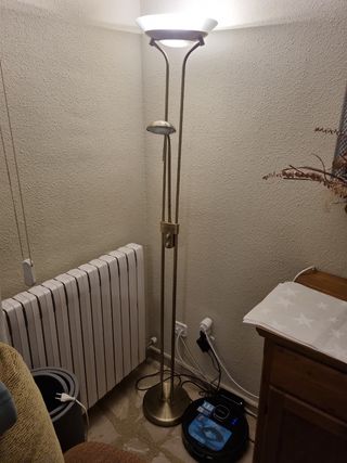 lampara de pie de doble hambiente , uno regulable en intensidad segun el momento y el otro para lectura que se puede dirijir