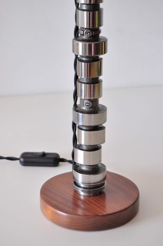 Se vende original lampara hecha con un arbol de levas, arbol pulido y barnizado para que no se oxide, con un pie de madera. Muy elegante perfecta para dar un aire industrial a la decoracion. no leer lamparas, industrial, motor, decoracion, decoracion industrial, bar, habitacion, garage, despacho, casa, salon
