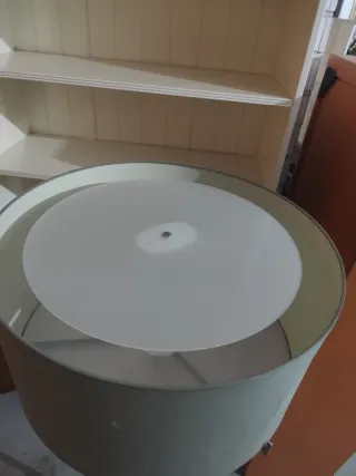 Làmpara con pie dorado de sobremesa, de muy buena calidad y pantalla de 45 cm.de diàmetre, en perfecto estado