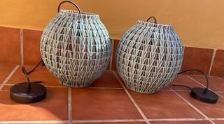 Precioso juego de lámparas, para colgar o pie, exterior o interior, Materiales de alta calidad. (Bombillas no incluidas pero son una opción ideal)