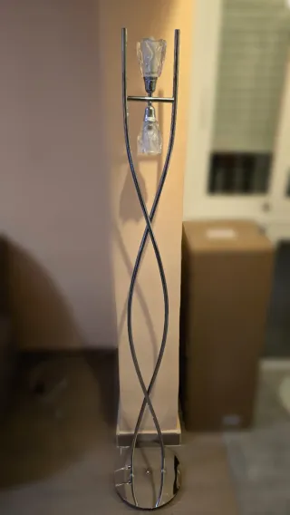 Elegante lámpara de pie con un diseño moderno, su precio fué de 120€, está en perfecto estado, ningún arañazo ni marca. Se incluyen las bombillas. Puedo llevártelo a casa si lo prefieres, por un coste adicional según la distancia, más información envíame un mensaje!