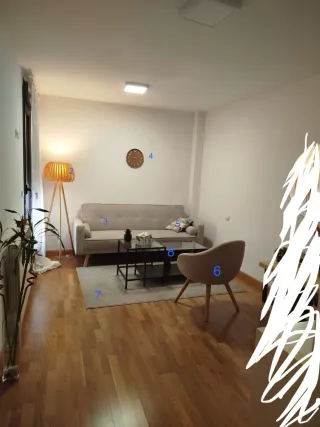 Preciosa lámpara de pie, ideal para crear un ambiente cálido y acogedor en cualquier espacio. Es de color blanco y tiene una pantalla de tela. - Diseño elegante y minimalista. - Perfecta para salón o dormitorio. - Base circular estable.