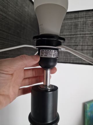 Lampara de sobremesa..la pantalla esta un poco arrugada...solamente el cable ya vale mas que el precio de la lampara ademas del Pie y la bombilla...