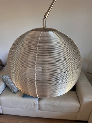 Vendo lampara de pie en perfecto estado. Es de alambre y tiene un pie de marmol negro. Las medidas son 45cm de diametro el pié de marmol, 197cm de alto hasta el punto más alto del arco, 120cm de altura del suelo al comienzo de la lampara y 40cm de diametro la lámpara. La altura es regulable con un par de reguladores que tiene a lo largo del arco. Tengo otra lámpara de techo a juego en mi perfil por si quieres ambas. Hago precio. Entrego únicamente en Travesía gredos (Pozuelo de Alarcón).