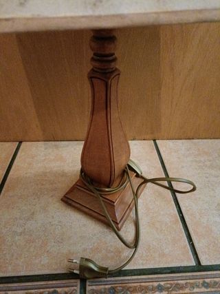 Lampara de mesa pie de madera color venge + pantalla en color beige