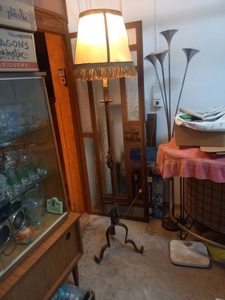 Lámpara de pie antigua, de hierro forjado, funciona perfectamente.