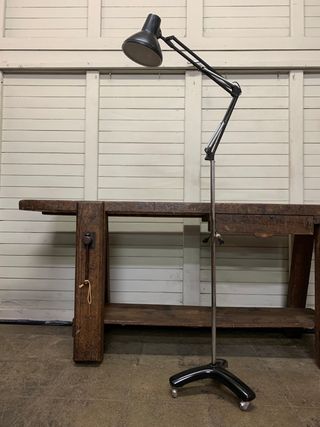 Instagram janoradeco. Lámpara de pie vintage. Los dos focos se regulan en altura e inclinación. Buen estado en general. Señales del paso del tiempo. Medidas 163 de alto.