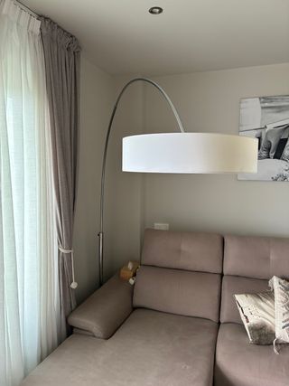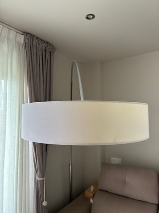 Preciosa lampara de pie de dos luces, con una pantalla grande y otra mas pequeña. Ideal para iluminar cualquier rincón de tu hogar. - Elegante diseño. - Dos intensidades de luz. - Perfecta para salón o dormitorio. No ésta perfectamente recto. Creó que sé puede arreglar.
