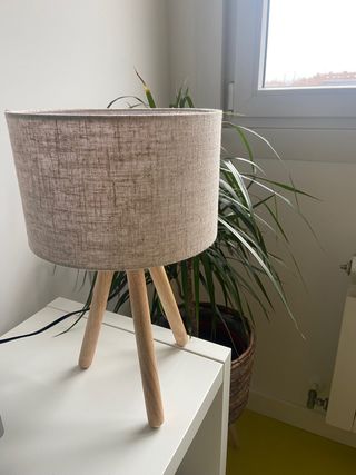 Lámpara de mesilla con pie de madera, se vende juntas o separadas 20 euros cada una.