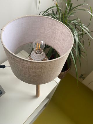 Lámpara de mesa con pie de madera. En perfecto estado Se vende por cambio de decoración