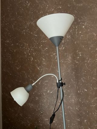 Lámpara de pie con un diseño moderno y funcional. Cuenta con dos luces, una principal y otra auxiliar. - - - Cable de alimentación incluido
